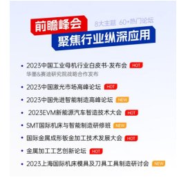 2023華機(jī)展·上海立足中國工業(yè)母機(jī)行業(yè)縱深應(yīng)用,錨定智能制造、激光產(chǎn)業(yè)、新能源汽車、鈑金加工、模具刀具、金屬材料、工廠數(shù)字化升級(jí)等8大主題,隆重舉辦60+熱門會(huì)議論壇。年度盛典、行業(yè)報(bào)告、白皮書發(fā)布,稀缺的行業(yè)資源匯聚于一處,為企業(yè)戰(zhàn)略發(fā)展指明方向,為制造業(yè)未來奔騰點(diǎn)亮明燈。