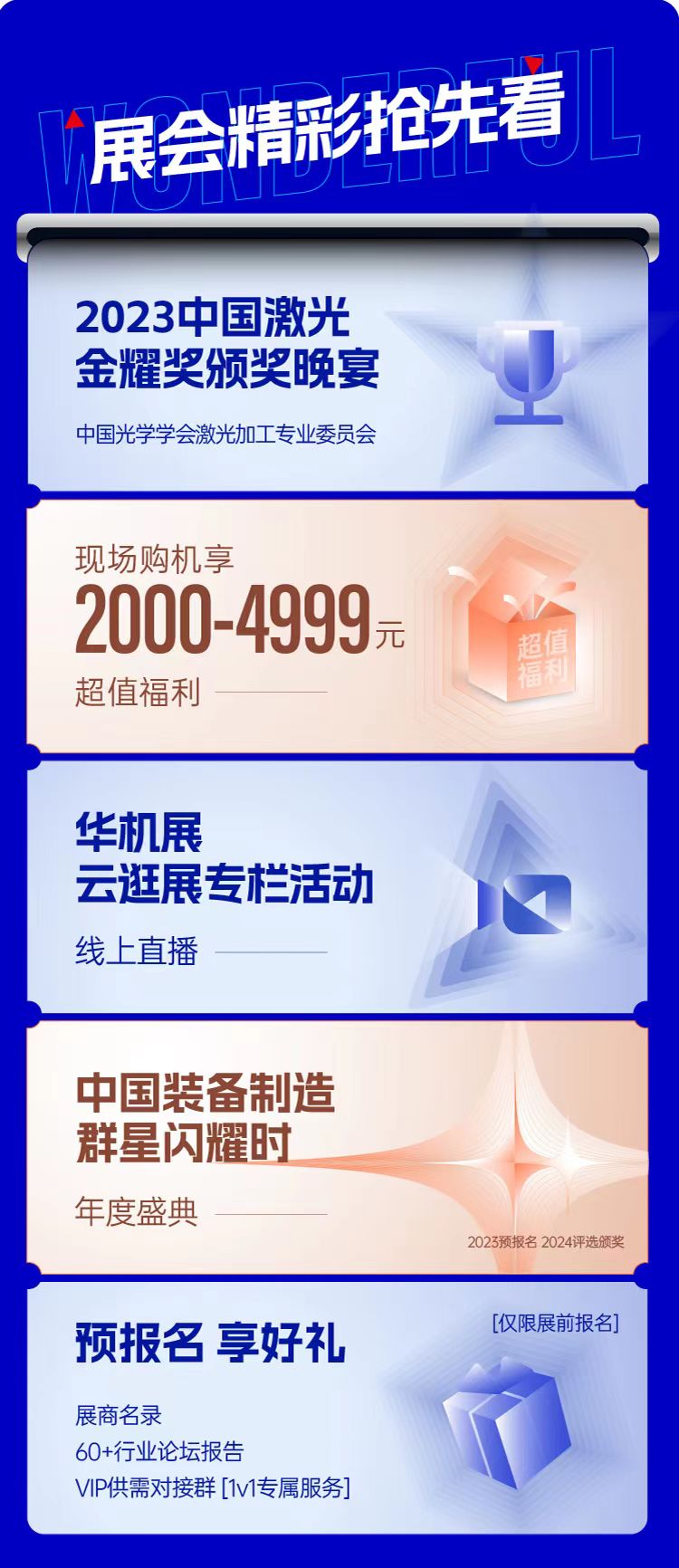 展會(huì)主辦方以甄至服務(wù)之心,為目標(biāo)行業(yè)觀眾打造極致的觀展體驗(yàn),精彩活動(dòng)與福利補(bǔ)貼帶來超多驚喜!