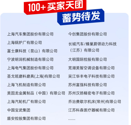 本屆展會(huì)將全面展示應(yīng)用于石油化工、航空航天、電子3C、有色金屬、環(huán)保設(shè)備、紡織機(jī)械、食品機(jī)械、通用機(jī)械、儀器儀表、工量刃具、模具制造、家具制品、汽摩配件、電動(dòng)工具、金屬冶煉、物流運(yùn)輸、機(jī)械制造、生物科技、新能源新材料、農(nóng)業(yè)機(jī)械、機(jī)床工具、家用電器、汽車制造、醫(yī)療器械等24大行業(yè)的新產(chǎn)品、新技術(shù)及新解決方案,100+買家天團(tuán)已整裝待發(fā),將組團(tuán)赴會(huì)!
