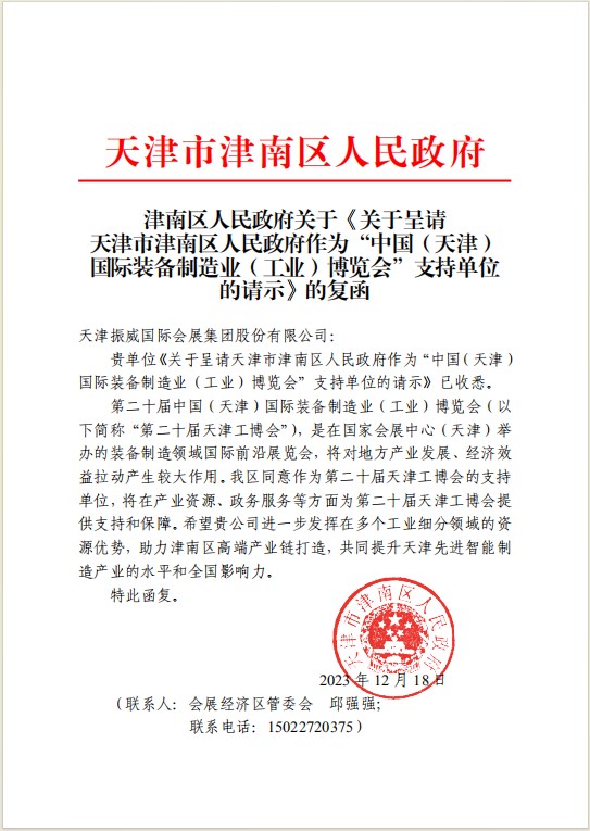 近日,天津市津南區(qū)對第20屆天津工博會出具了作為展會支持單位的函,充分展示了津南區(qū)對會展經(jīng)濟(jì)的關(guān)注,對以天津工博會為平臺的大制造業(yè)的重視和支持,津南區(qū)將整合天津工博會平臺資源及區(qū)內(nèi)重點(diǎn)發(fā)展的制造產(chǎn)業(yè)需求,構(gòu)架1+1>2的產(chǎn)業(yè)發(fā)展新模式。