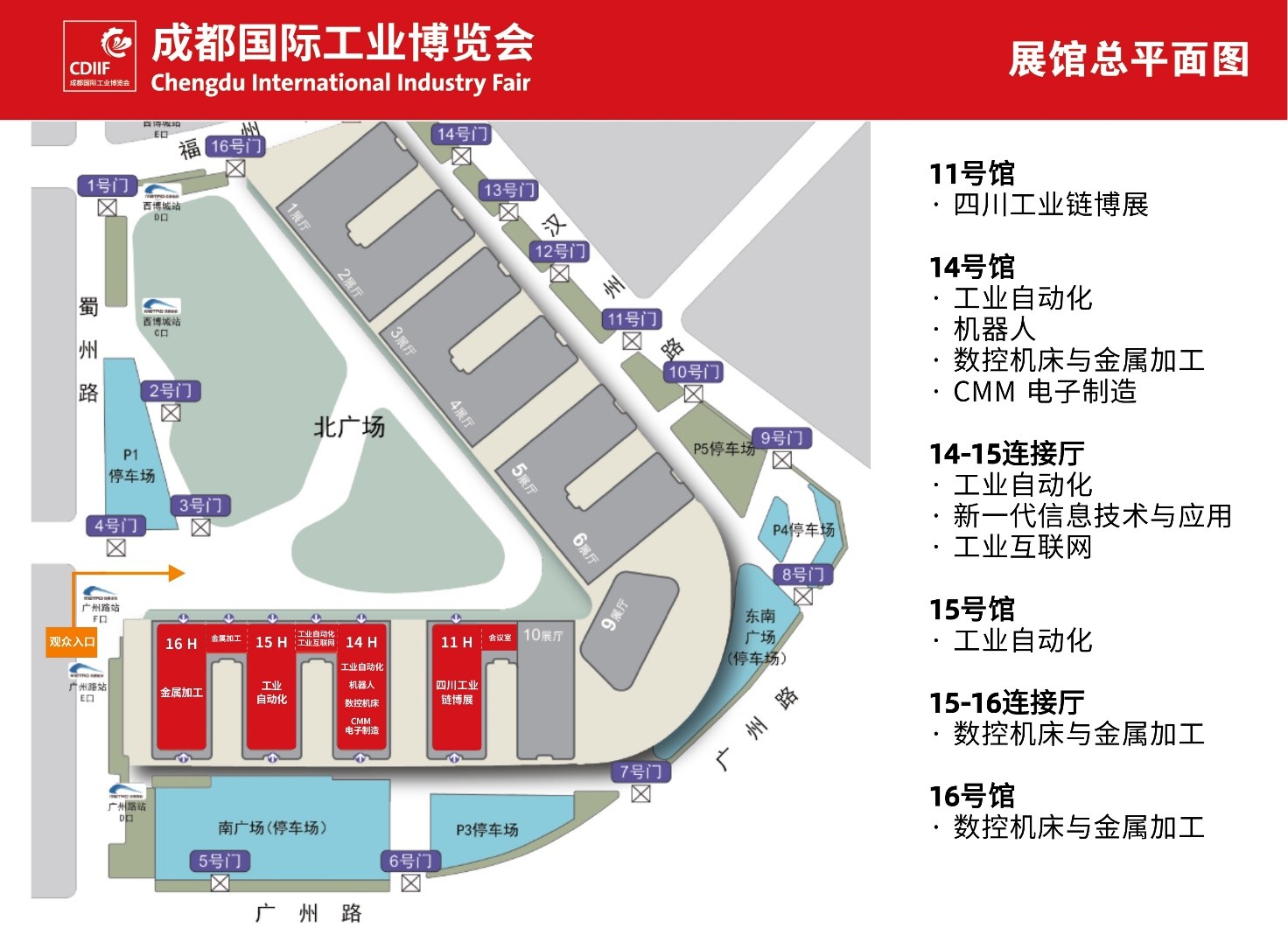 11號館 四川工業鏈博展 | 14 號館 工業自動化/機器人/數控機床與金屬加工/CMM 電子制造 |