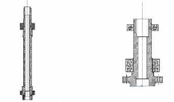 主軸作為分析研究的對象選擇了兩種設計結構,一種是長軸結構(見圖1),另一種是短軸結構(見圖2)。由圖1可以看出,長軸結構設計中的主軸屬于細長軸,長度為736mm。而第二種設計的空心短軸中軸長度顯著減小到280mm,直徑相對增大。可以看出這兩種方案中主軸結構的形狀和尺寸都不相同,通過有限元分析可計算出結構的模態參數,對比結果判斷哪種結構更優。