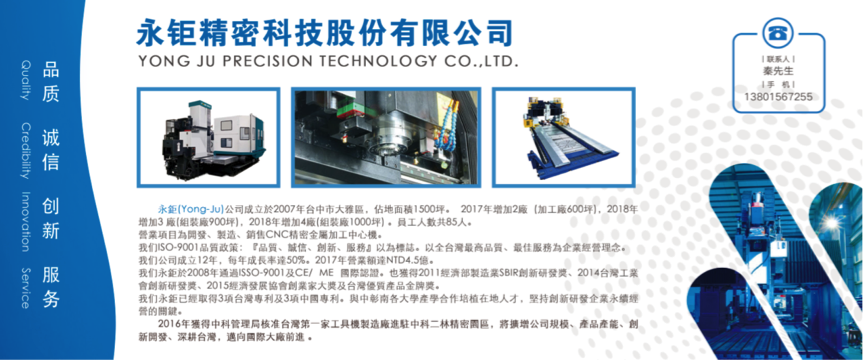 本屆展會(huì)將呈現(xiàn)國(guó)內(nèi)外最前沿的技術(shù)與產(chǎn)品,集中體現(xiàn)當(dāng)今機(jī)加工與前端技術(shù)的高度融合,充分體現(xiàn)機(jī)床在各個(gè)行業(yè)的應(yīng)用方案。同時(shí),主辦方將竭盡全力為行業(yè)的交流、合作打造更加專業(yè)的服務(wù)平臺(tái),促進(jìn)行業(yè)間的融合發(fā)展與協(xié)同創(chuàng)新,為業(yè)界開(kāi)創(chuàng)一個(gè)人機(jī)共舞的全新平臺(tái)!屆時(shí)迎來(lái)了臺(tái)灣永鉅精密科技股份有限公司震撼亮相!