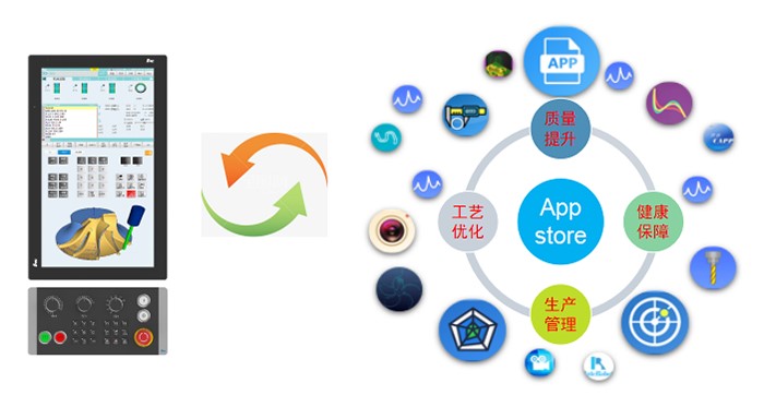 目前,隨著互聯(lián)網(wǎng)、大數(shù)據(jù)、云計(jì)算和新一代人工智能技術(shù)與制造技術(shù)的不斷融合發(fā)展,數(shù)控系統(tǒng)智能化技術(shù)快速發(fā)展,很多數(shù)控系統(tǒng)企業(yè)推出了具有智能化功能的數(shù)控系統(tǒng),其特點(diǎn)是:增加了傳感器,增強(qiáng)了對加工狀態(tài)感知能力,實(shí)現(xiàn)了機(jī)床加工數(shù)據(jù)的匯聚;利用人工智能算法挖掘數(shù)據(jù)中的知識,用戶可以在數(shù)控系統(tǒng)企業(yè)的支持下開發(fā)APP,實(shí)現(xiàn)機(jī)床控制的智能化。在CIMT2023北京國際機(jī)床展上,境內(nèi)外多家數(shù)控系統(tǒng)企業(yè)展出了具備智能化技術(shù)的數(shù)控系統(tǒng)。