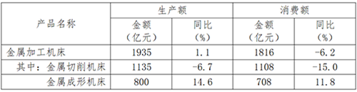 金屬切削機床和金屬成形機床的生產額、消費額及同比變動情況,詳見表2。