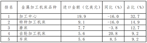 表6 2023年進口金額排前五位的金屬加工機床品種