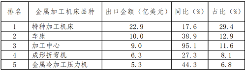表7 2023年出口金額排前五位的金屬加工機床品種