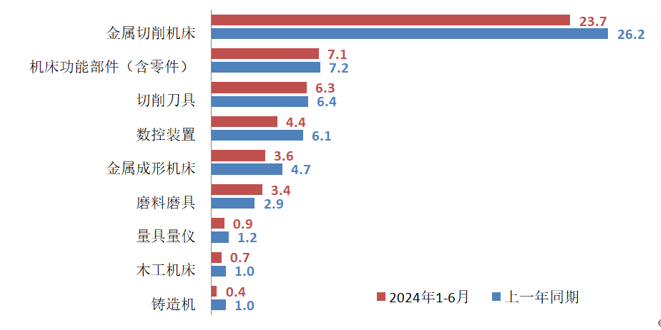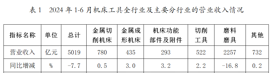 表1 2024年1-6月機床工具全行業及主要分行業的營業收入情況