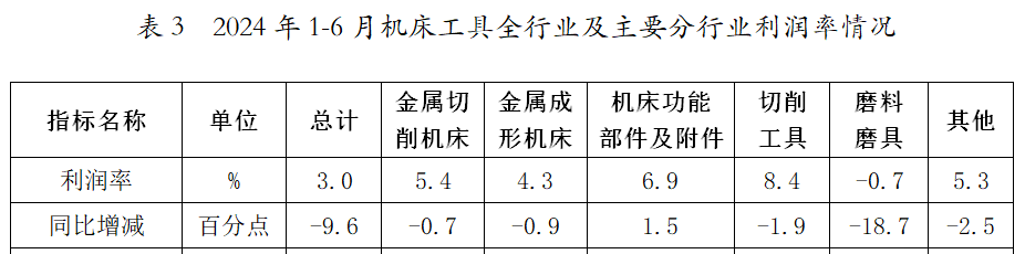表3 2024年1-6月機床工具全行業及主要分行業利潤率情況