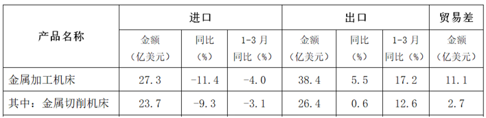 根據中國海關數據,機床工具商品進出口的金額及同比變動情況,詳見表4。