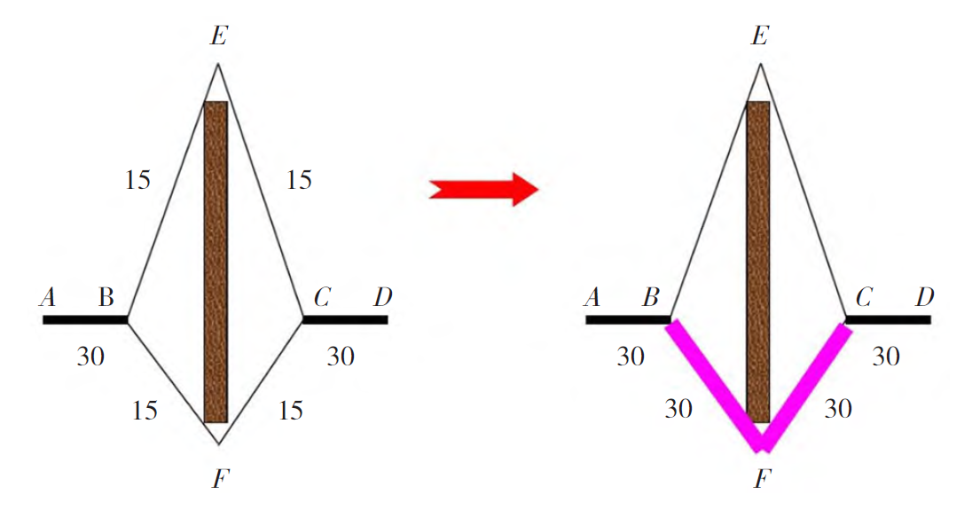 蟻群算法模擬了螞蟻在尋找食物時的行為,通過模擬螞蟻釋放信息素的過程來尋找問題的最優(yōu)解。蟻群算法的關(guān)鍵概念包括螞蟻、路徑選擇、信息素更新和啟發(fā)函數(shù)。蟻群算法是一種啟發(fā)式優(yōu)化算法,其靈感源自于螞蟻在尋找食物時的集體行為。這個算法模擬了多只虛擬螞蟻在解決問題時的協(xié)作與競爭過程,通過不斷迭代來逐步尋找問題的最優(yōu)解。在蟻群算法中,多只螞蟻同時探索搜索空間。每只螞蟻都隨機(jī)選擇路徑,并根據(jù)路徑的長度和路徑上的信息素濃度來評估路徑的質(zhì)量。螞蟻更有可能選擇短路徑,因為這樣可以更快到達(dá)目標(biāo),但同時也會考慮信息素濃度,因為高濃度的信息素表明路徑可能通往一個好的解。這個權(quán)衡反映在螞蟻選擇路徑的概率分布中,從而引導(dǎo)它們朝著更有希望的方向前進(jìn)。每只螞蟻在完成一次路徑選擇后,會根據(jù)路徑的質(zhì)量釋放信息素。如果一只螞蟻找到了更好的解,它會釋放更多的信息素,增加這條路徑的信息素濃度。信息素濃度會隨著時間逐漸蒸發(fā),模擬了信息素在自然界中的揮發(fā)和衰減過程。信息素在每個迭代中根據(jù)揮發(fā)率逐漸消失,并根據(jù)螞蟻的選擇進(jìn)行更新,如圖2所示。路徑BFC:螞蟻增加,信息量增加,路徑被選擇的概率增加;路徑BEC:時間增加,信息量減少,路徑被選擇的概率減小。