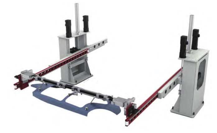 單、雙臂全自動沖壓生產線作為高效、柔性沖壓生產線的新生力量,受到各大汽車主機廠的青睞。此種類生成線主要由4臺或5臺機械式壓力機組成,每臺壓力機均配備可以沿垂直于整線方向自動開進開出的工作臺。工作臺開進開出的主要目的是更換安裝在其上的模具,模具一般由上模和下模組成,上模安裝在滑塊上,下模安裝在工作臺上,上、下模具合模后,實現對覆蓋件的拉延工序。和自動工作臺對應的是端拾器的自動更換,兩者結合可有效縮短換模及模具調整時間。
