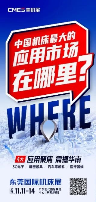 130000平展覽面積、1500+國內外展商,第六屆CMES華機展 | 東莞國際機床展將于2024年11月11-14日在廣東現代國際展覽中心(東莞厚街)舉辦,不僅強勢集結3C電子、精密模具、汽車零部件、醫療器械應用行業的前沿設備,還將為行業敬獻“1+1+N”同期峰會,暨1場超級會議——東南亞-工業母機產業發展大會、1場國潮大會、N場應用縱深論壇,打造裝備智造新國潮,加速出海。