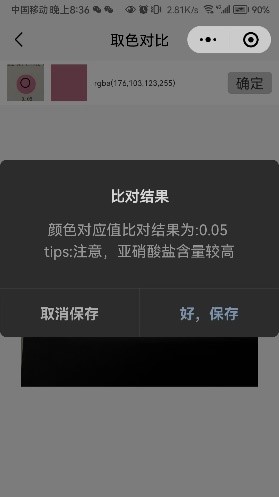 2) 使用手機拍攝PH、亞硝酸鹽與水體硬度檢測試紙的照片,APP能夠讀取照片并對試紙的顏色進行解析并提示用戶,幫助用戶對這些指標是否合適進行判斷。