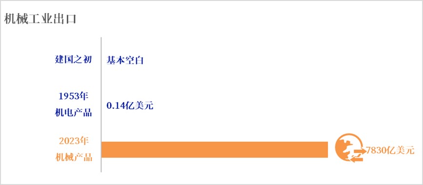 新中國成立初期,制造能力薄弱制約機械工業貿易發展,機械工業出口基本空白,1953年機電產品合計出口額僅0.14億美元。改革開放后,依托不斷夯實的產業基礎與持續提升的制造能力,機械工業全面融入全球產業分工體系。特別是進入新世紀以來,機械工業國際市場競爭力顯著提升,2006年首次實現貿易順差,2021年外貿進出口總額首次超過1萬億美元大關。2023年,機械工業出口總額達到7830億美元,實現貿易順差4785億美元,占全國貨物貿易順差的58.1%。