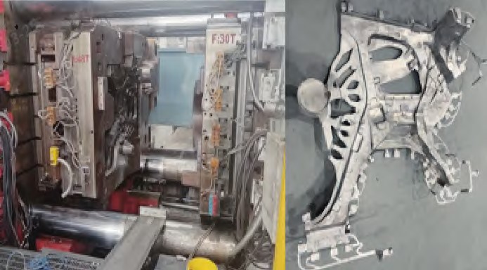 一體化壓鑄,是指將傳統(tǒng)的多個單獨(dú)、分散的小件進(jìn)行重新設(shè)計(jì)高度集成,在利用大型壓鑄機(jī)進(jìn)行一次成型,省略焊接的過程直接得到一個完整的大型件的新型壓鑄工藝。壓鑄島如圖1所示。