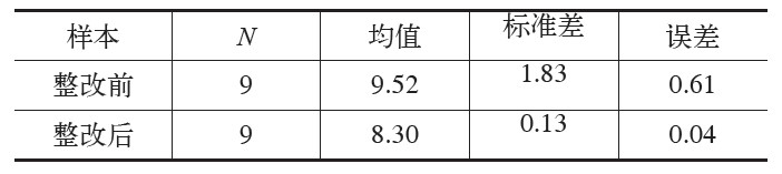 方法:μ1為整改前的總體均值;μ2為整改后的總體均值;差值μ1-μ2已針對此分析假定了等方差。