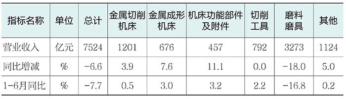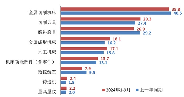 表1 2024年1-9月機床工具全行業及主要分行業的營業收入情況