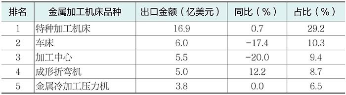 (2)出口金額排前五位的金屬加工機床品種