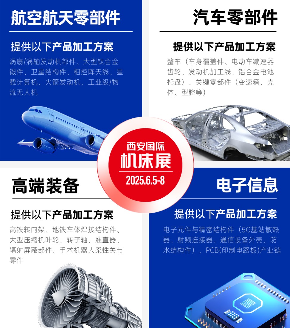 2025西安國(guó)際機(jī)床展,將成為產(chǎn)業(yè)巨頭與創(chuàng)新力量的引力場(chǎng)!航空航天、汽車(chē)制造、高端裝備、電子信息四大領(lǐng)域應(yīng)用終端買(mǎi)家陸續(xù)邀請(qǐng)中,中國(guó)航發(fā)、陜西航空電氣、三星、比亞迪、中國(guó)能建、秦川集團(tuán)、中國(guó)電子科技等百余家頭部企業(yè)將攜需求而來(lái),開(kāi)啟中西部工業(yè)母機(jī)行業(yè)商機(jī)與人脈的“黃金窗口”。