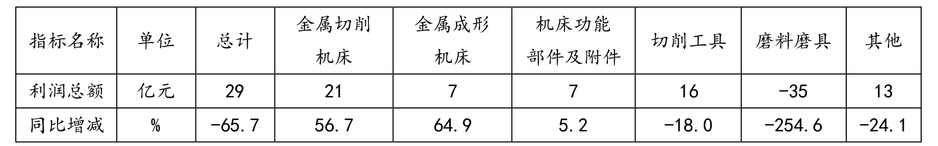機(jī)床工具行業(yè)及主要分行業(yè)的利潤(rùn)總額情況,詳見表2。