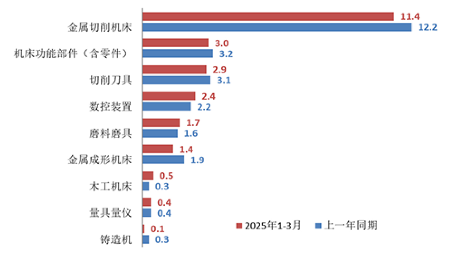2025年1-3月,機(jī)床工具行業(yè)平均利潤(rùn)率為1.3%,較上年同期下降2.2個(gè)百分點(diǎn)。主要分行業(yè)中,金屬切削機(jī)床、金屬成形機(jī)床和機(jī)床功能部件及附件同比增長(zhǎng)。