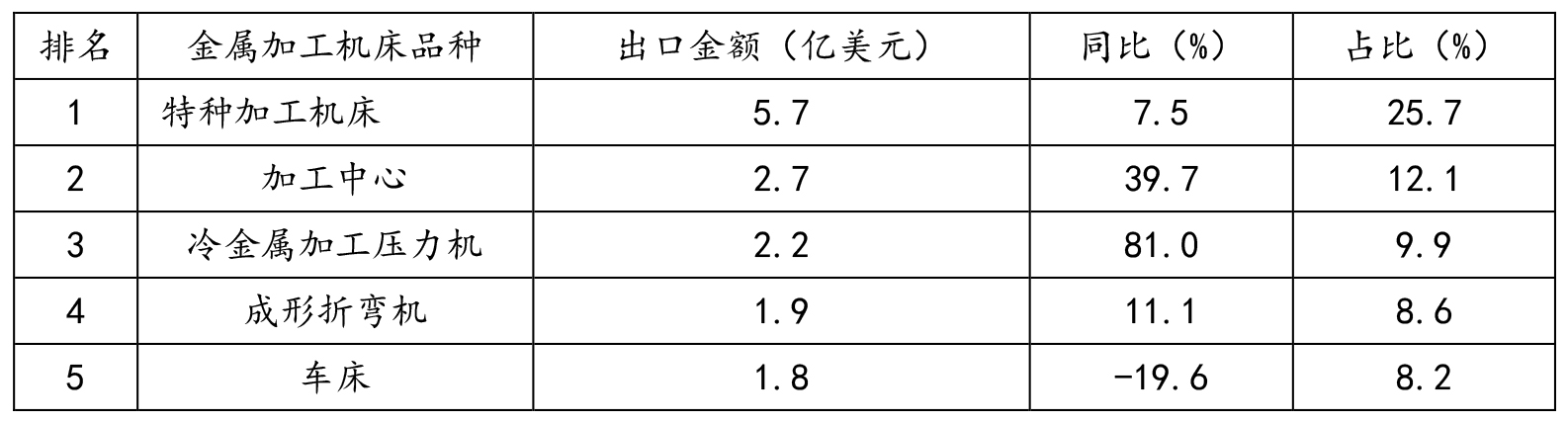 (2)出口金額排前五位的金屬加工機(jī)床品種