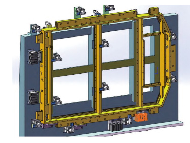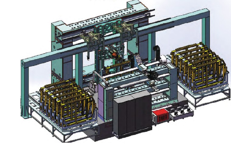 該機床大大提高了電池托盤加工的自動化水平和加工效率,現有的單機生產效率低,采用本組合自動化機床,效率可以提高2倍。除了加工效率,更重要的是提高了工件的加工質量。電池托盤是型材焊接件,定位基準誤差大,工件自身變形大,采用多次定位極易導致孔位偏差,因此應盡量采用一次性加工,使用該機床解決了原有單機生產多次裝夾所導致的孔位誤差問題。