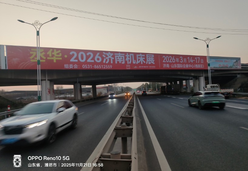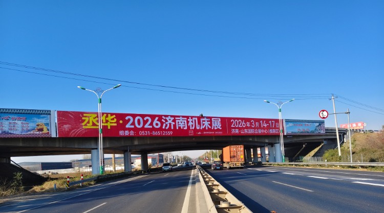 調(diào)研數(shù)據(jù)顯示,濰坊地區(qū)專業(yè)觀眾占濟(jì)南機(jī)床展全國觀眾總量的6%,且采購需求存在較大挖掘空間。基于此,展會在濰坊車流量日均3萬余輛的核心路段布局跨橋廣告,既借助高車流量實現(xiàn)展會大范圍曝光,又精準(zhǔn)錨定濰坊產(chǎn)業(yè)帶流量樞紐,串聯(lián)周邊產(chǎn)業(yè)集群,讓展會信息隨車流傳至產(chǎn)業(yè)鏈上下游,為展會吸納更多精準(zhǔn)采購商筑牢宣傳根基。