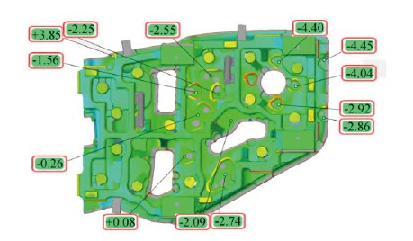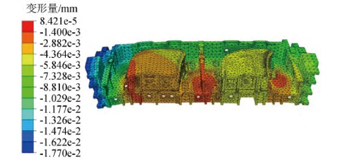 圖9 頂蓋模具支撐到測(cè)量平板小車上的變形結(jié)果